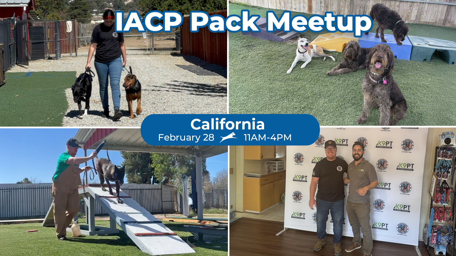 Join us for a free, in-person Pack Meetup hosted at Enlighten Dogs dog training center in Cherry Valley, California. This event is open to IACP members and anyone interested in joining the IACP community. The day will begin at 11AM and close out at 4PM.