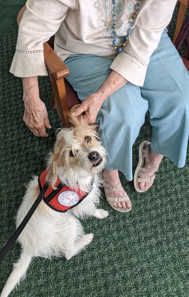 A therapy dog is a well-trained, well-mannered, and emotionally stable dog that works together with a qualified handler to provide comfort, support, and positive interactions to people in a variety of settings. Unlike service dogs, which are individually trained to perform specific tasks for one person with a disability, therapy dogs are focused on benefiting others through structured visits and activities. Their primary role is to enhance emotional well-being, reduce stress, and promote a sense of connection and comfort.